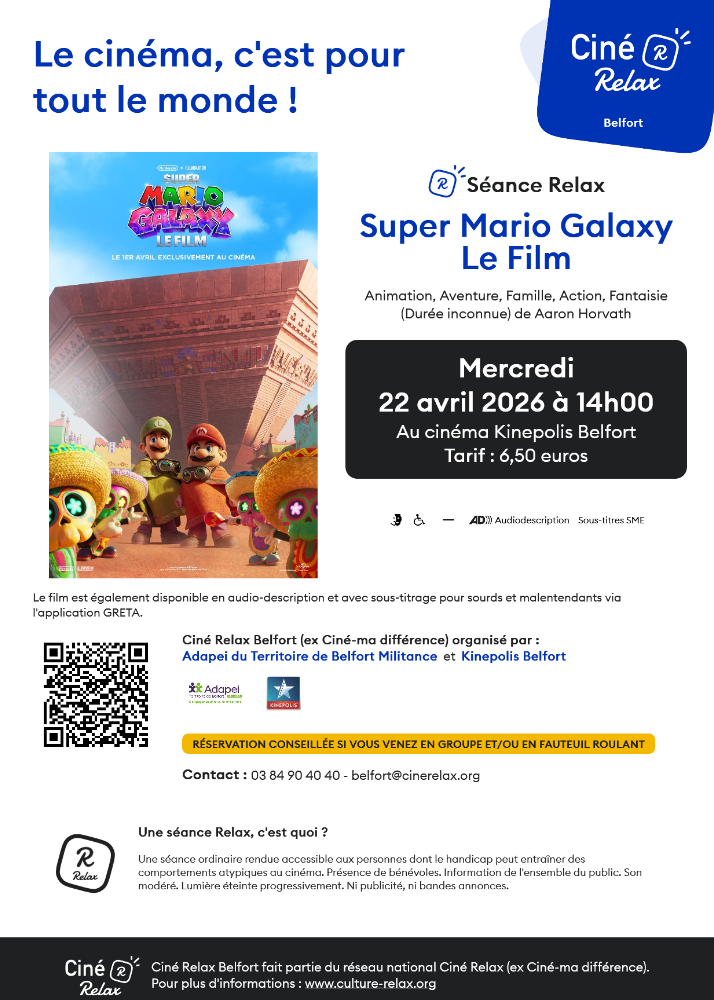 Ciné Relax le 22 Avril à 14 heures Kinepolis Belfort
