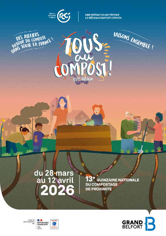 Tous Au Compost 11/03/2026 Du 28 mars au 12 avril, c'est la quinzaine nationale du compostage de proximité. Le Grand Belfort y participe avec un programme d'animations riche et ludique. Toutes les infos sont en ligne sur le site internet du Grand Belfort.