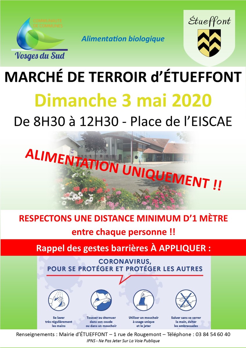 Le marché du dimanche 3 mai 2020 est MAINTENU (sur arrêté préfectoral n° 90-2020-03-26-003).
