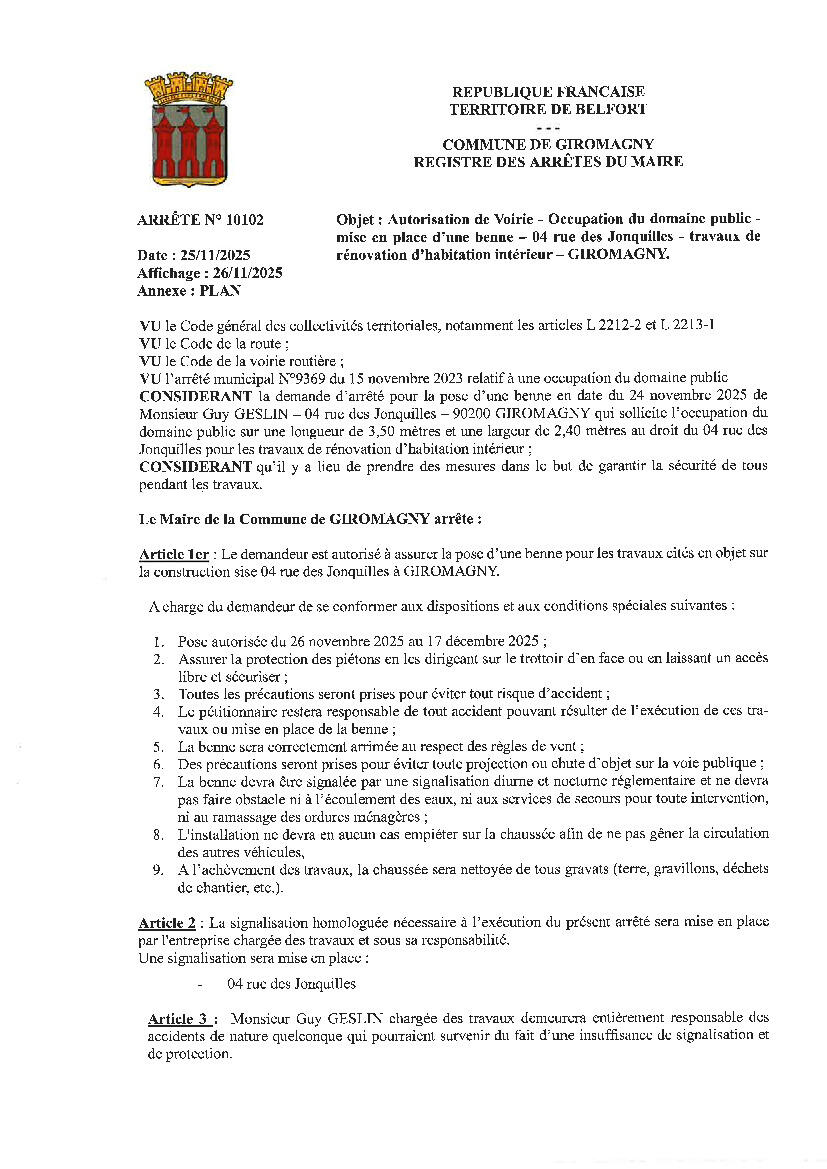 ⚠️ Pose d’une benne - Rue des Jonquilles