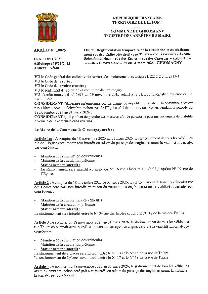 Viabilité hivernale - Passage des engins de déneigement