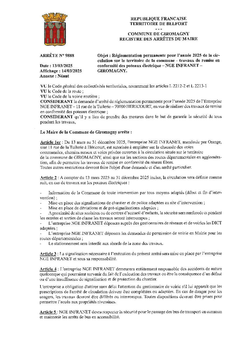 Dans le cadre de travaux de remise en conformité du réseau fibre, l’entreprise NGE INFRANET sera amenée à intervenir sur la commune durant l’année 2025.