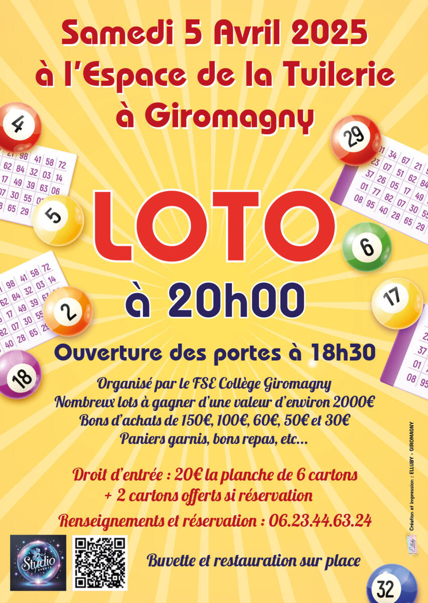 Le FSE du collège de Giromagny organise un loto le Samedi 5 avril 2025 à l'Espace de la Tuilerie