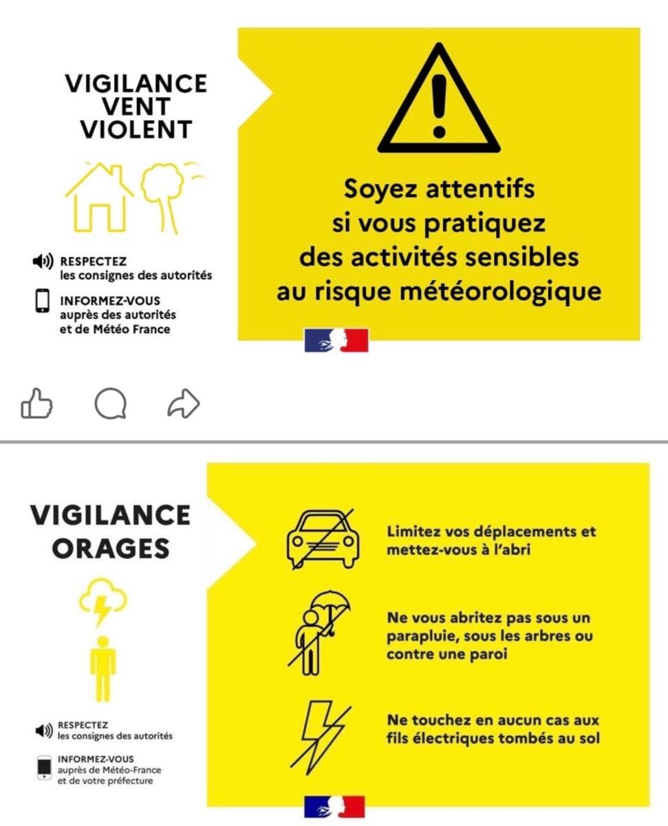 ⚠️VIGILANCE JAUNE VENT ET ORAGE ⚠️