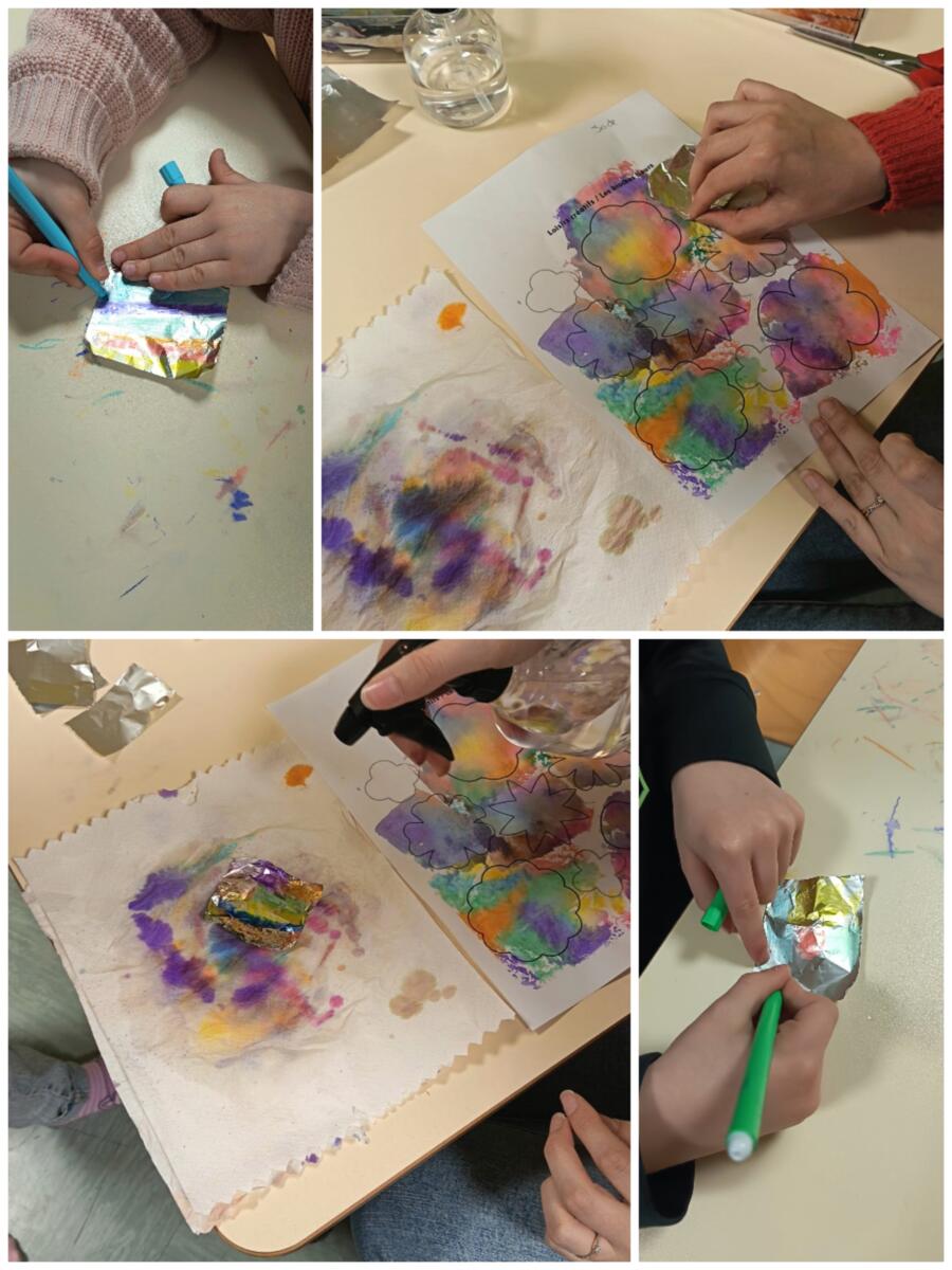 - création de fleurs avec une nouvelle technique en utilisant de l'aluminium pour les maternelles
