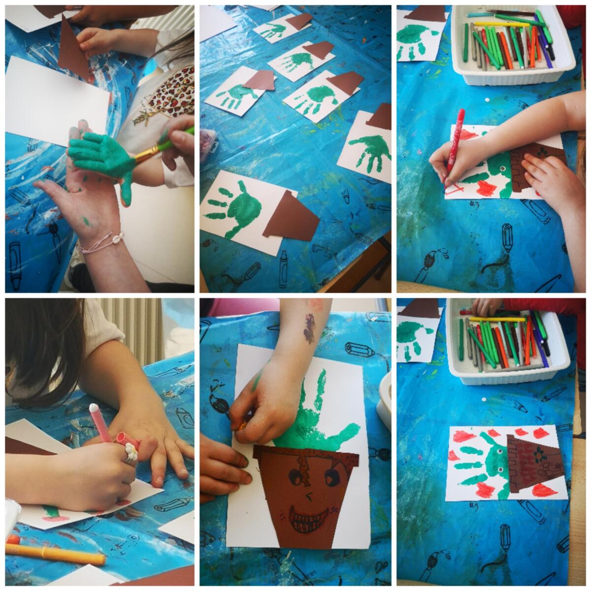 Les enfants ont confectionné un petit jardin d'insectes le matin...et dans l'après-midi, avec leur main et une peinture texturée, ils ont pu faire un cactus.