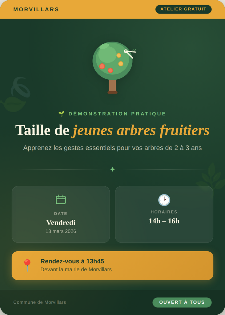 Atelier démonstration de taille arbres fruitiers le 13 mars