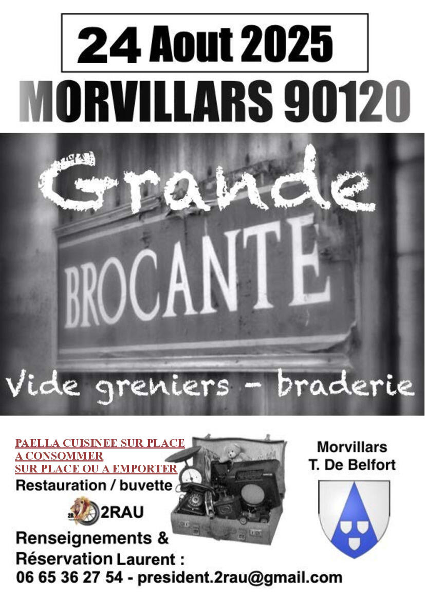 Votre mairie / Actualités / BROCANTE de MORVILLARS Dimanche 24 Août