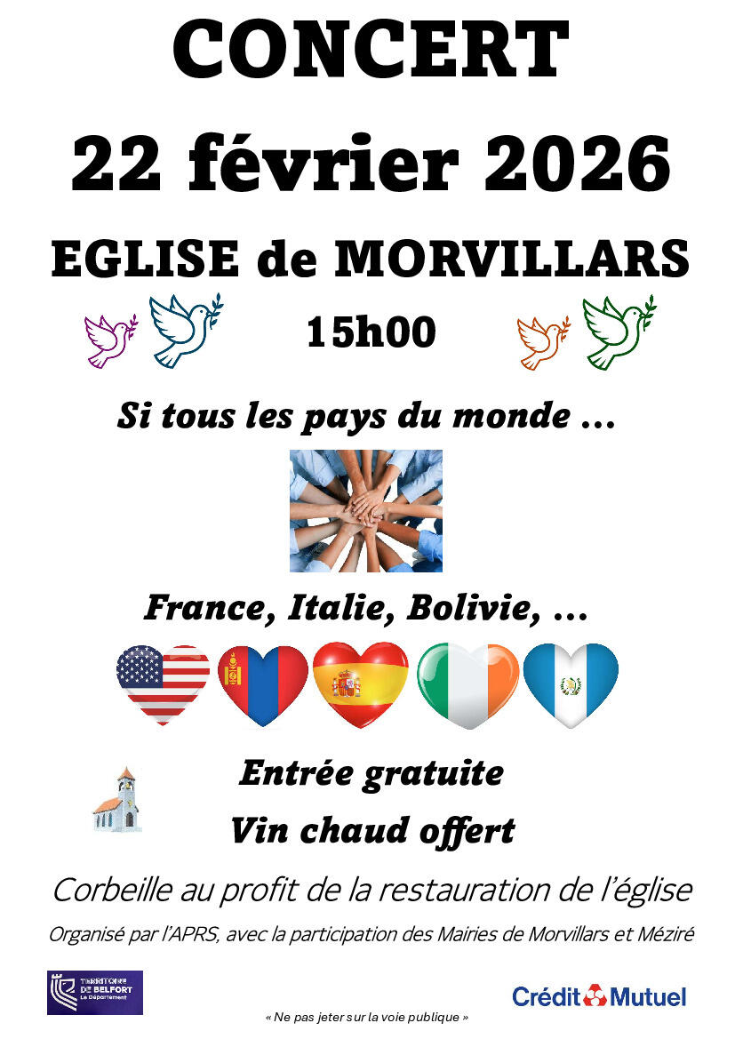 Votre mairie / Actualités / Concert à l'église de Morvillars dimanche 22 février à 15h