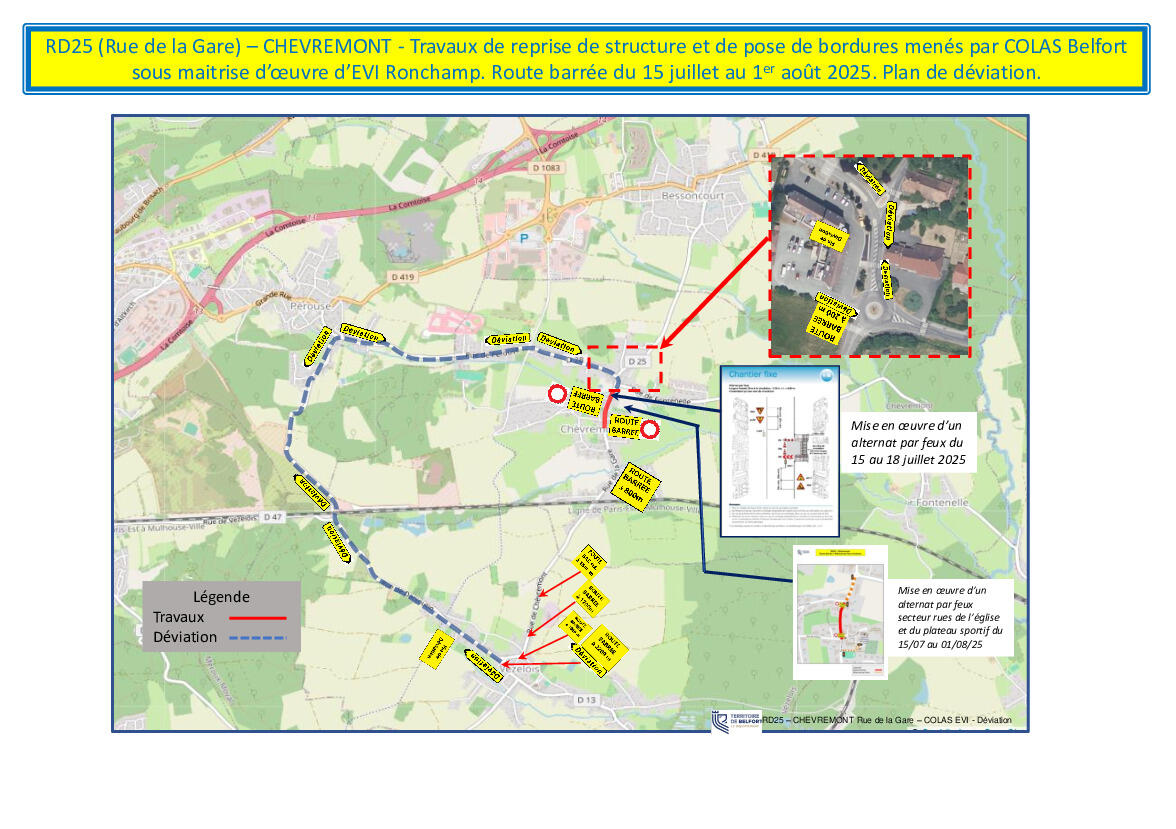 A cette occasion une déviation est mise en place par les départementales RD25, RD28 et RD 13 traversant Pérouse et Vézelois.