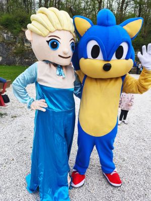 Les parents avaient confectionné des gâteaux, l’après-midi c'est conclu par la visite des deux mascottes ; Sonic et Reine des Neiges