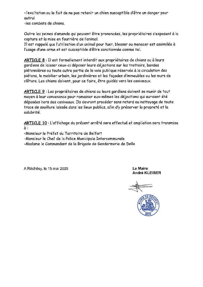 Arrêté n° 10 du 15 mai 2025 concernant les propriétaires de chiens.