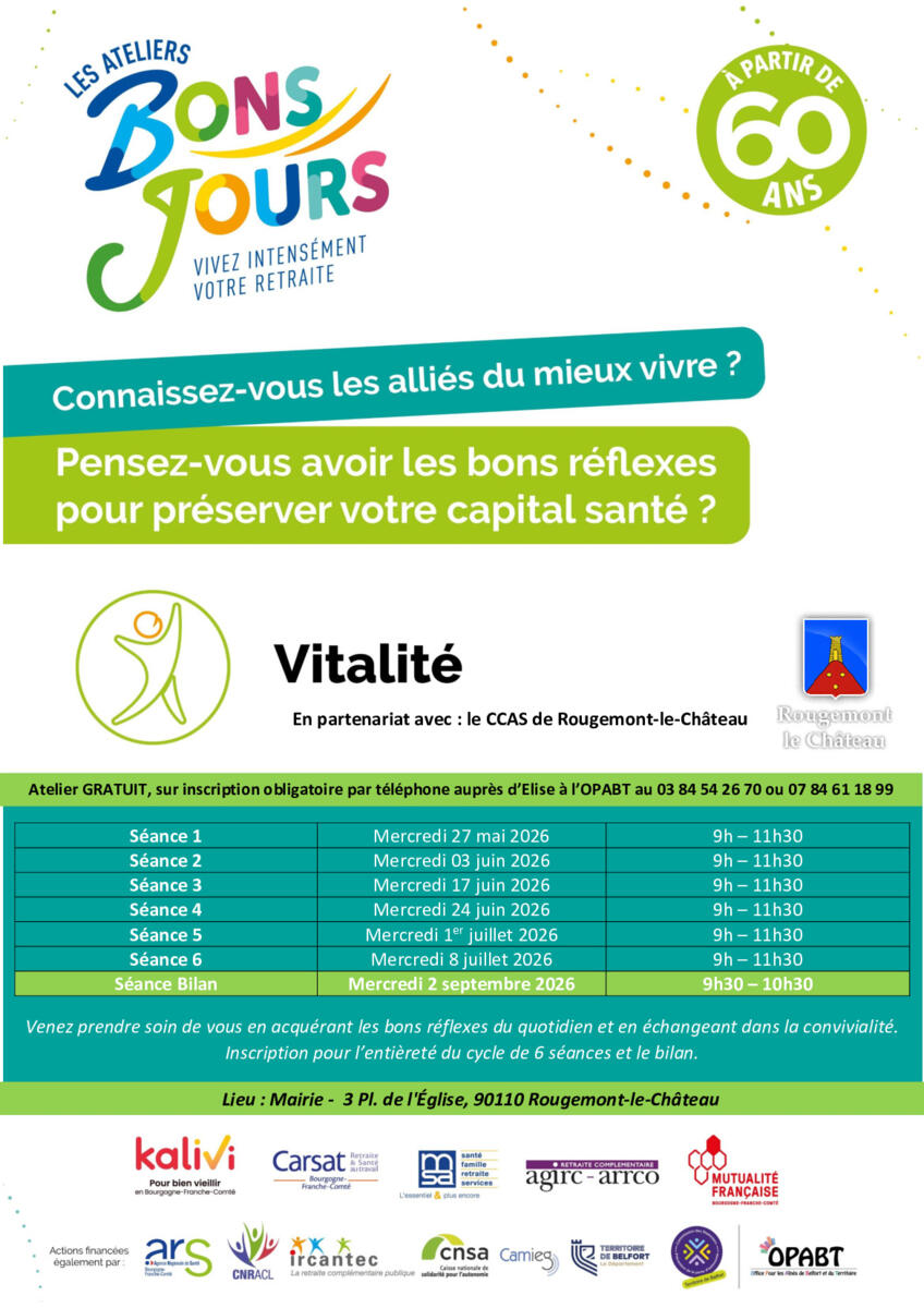 Votre mairie / Actualités / 🌿 Ateliers "Vitalité" – Prenez soin de vous ! 🌿