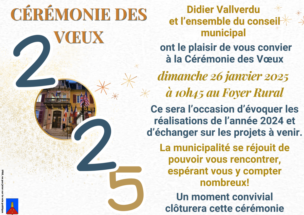 Monsieur le Maire et l'ensemble du Conseil Municipal ont le plaisir de vous convier à la cérémonie des vœux