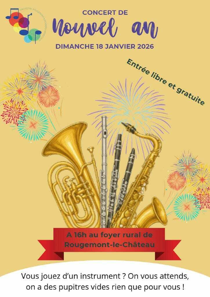 🎵[Concert du nouvel an]✨️ 07/01/2026 🎶Un rendez-vous musical à ne pas manquer❗️ 📌Dimanche 18 janvier ✅️16h au Foyer rural