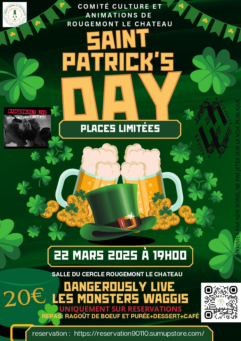 Soirée de la Saint Patrick 07/03/2025 🍀 C’est bientôt, n’hésitez pas plus longtemps et prenez vite vos places 🍀