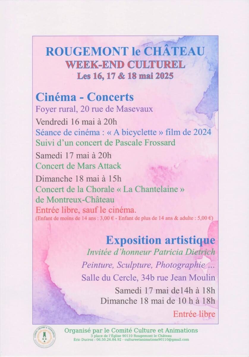 Week-end culturel à Rougemont-le-Château 14/05/2025 WEEK-END CULTUREL LES 16, 17 ET 18 MAI 2025 Source : Mairie de Rougemont-le-Château
