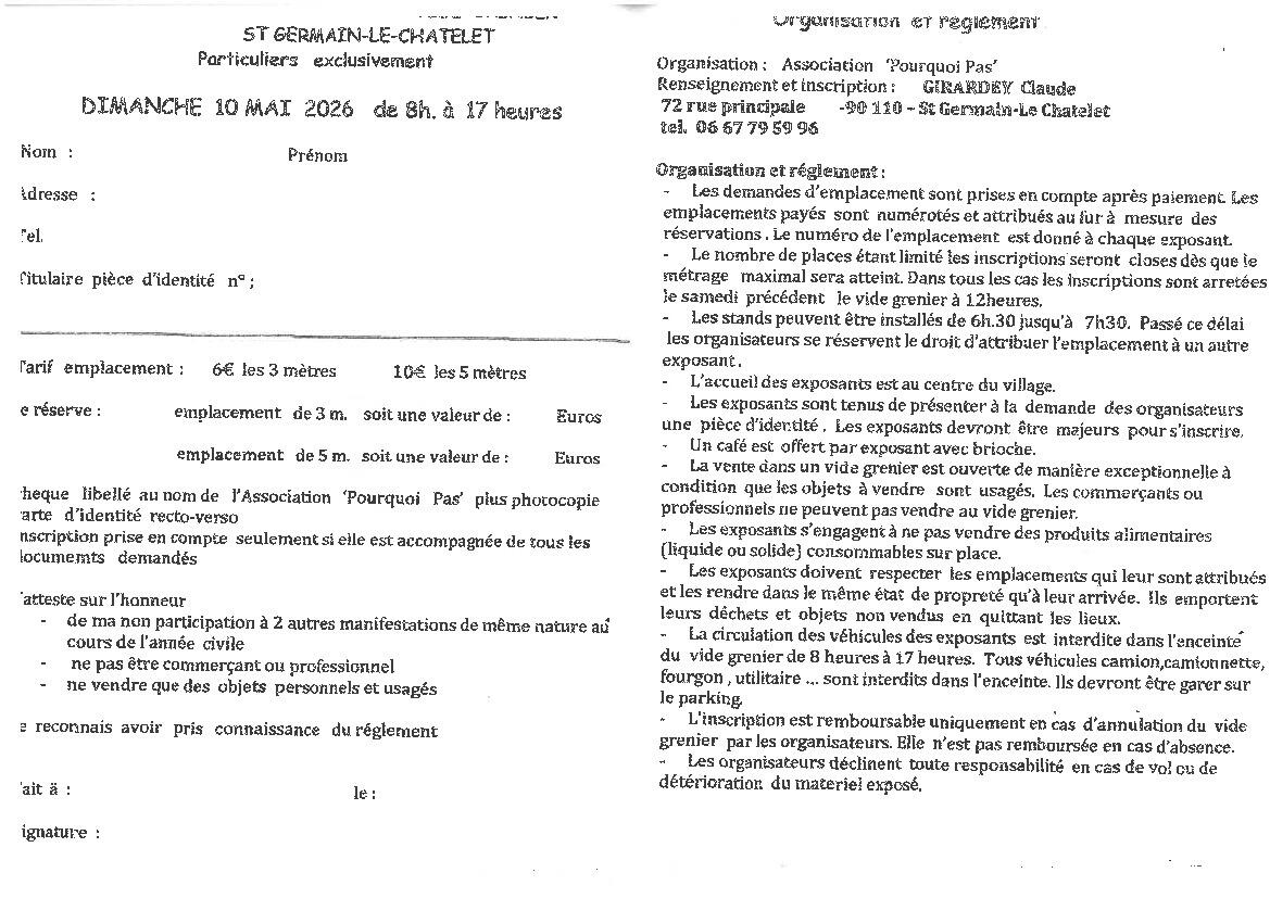 L'association Pourquoi Pas organise un vide grenier sur la place du village le dimanche 10 mai 2026 de 8h Ă 17h.