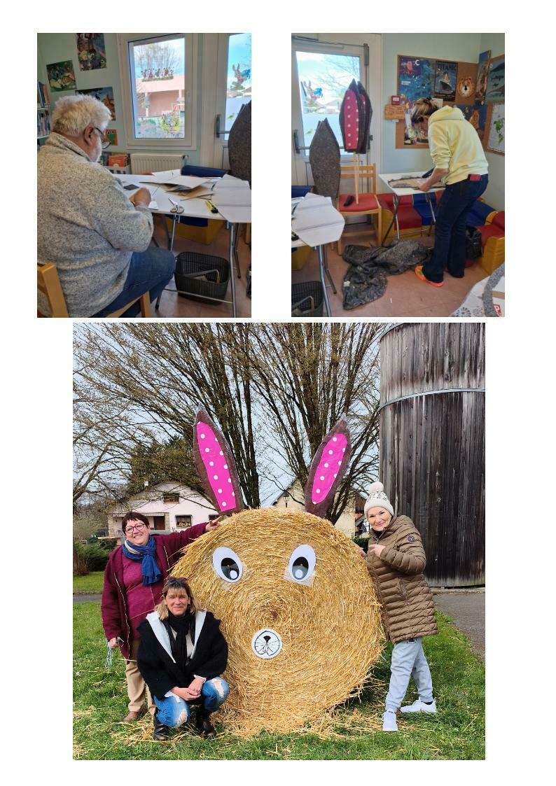 Des lapins de paille, aux oreilles roses ont décoré les alentours de la salle des fêtes pendant toute la période Pascale, après avoir été fabriqués par une partie des membres du comité fleurissement, et installés par d'autres...
