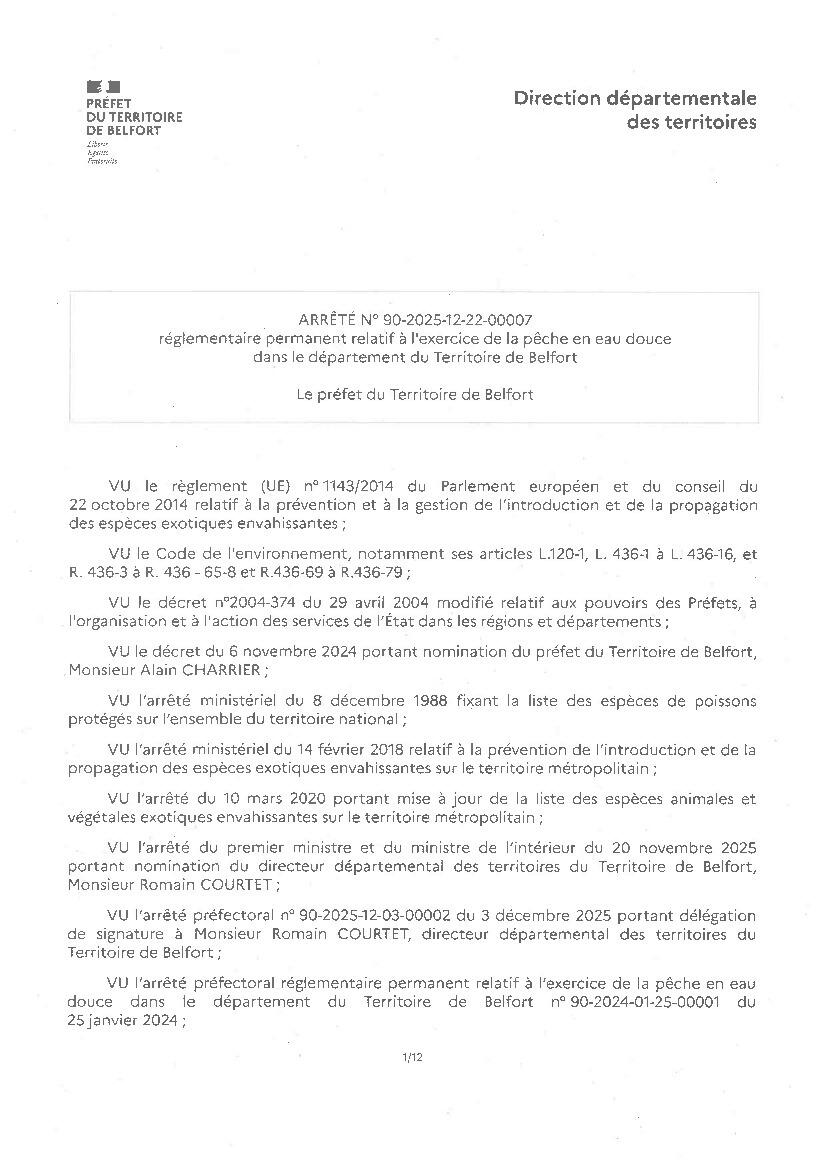 Arrêté Préfectoral : pêche en eau douce dans le département