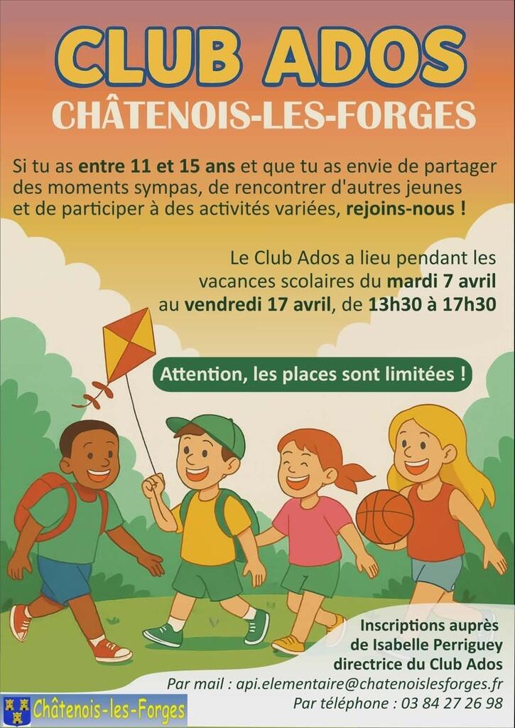 Les vacances de Pâques approchent : les inscriptions sont en cours pour le centre de loisirs (enfants de l’école élémentaire) et pour le club ados (collégiens).
