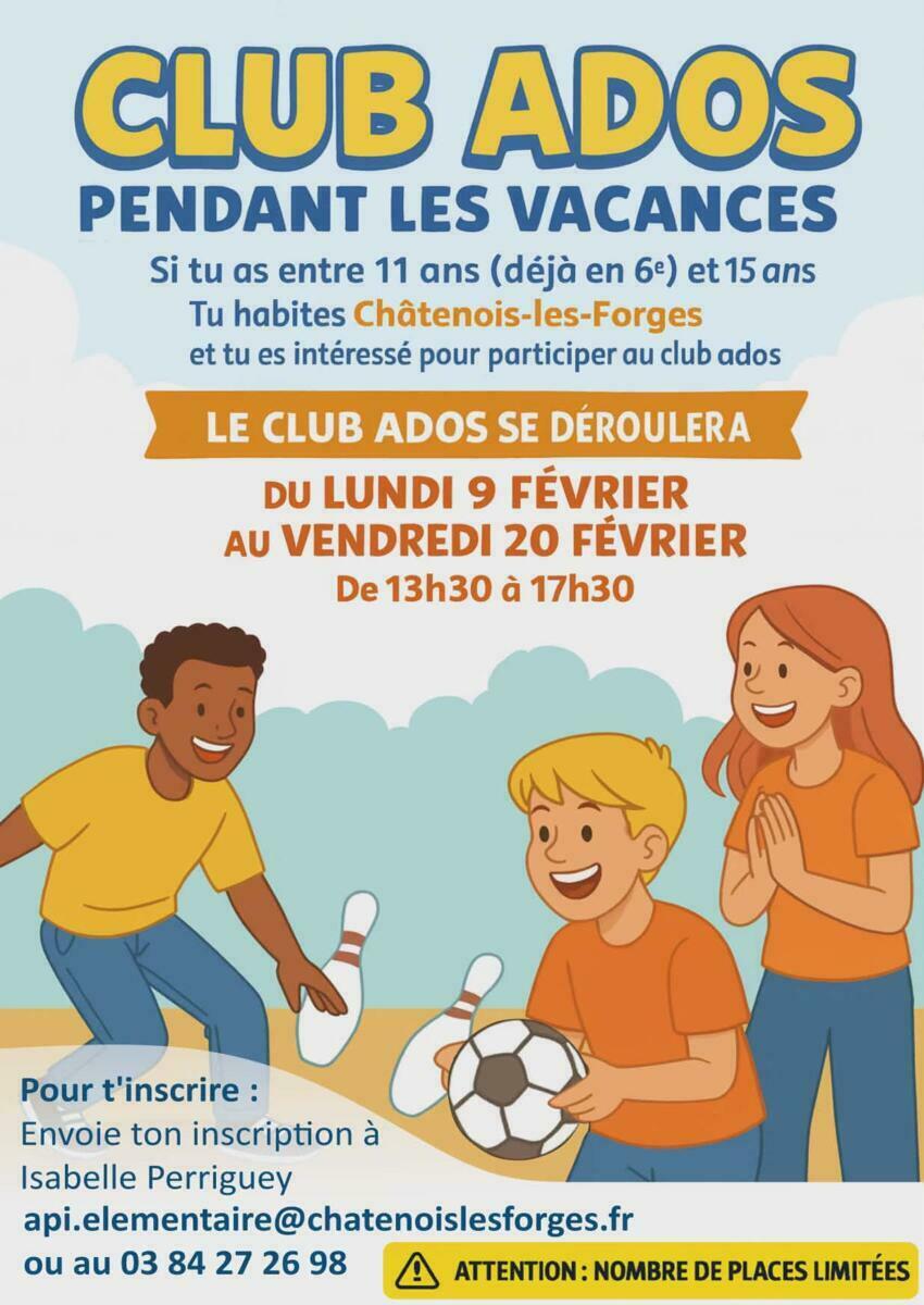 Il reste quelques places au club ados de Châtenois-les-Forges. Les familles de Trévenans peuvent désormais s’inscrire.