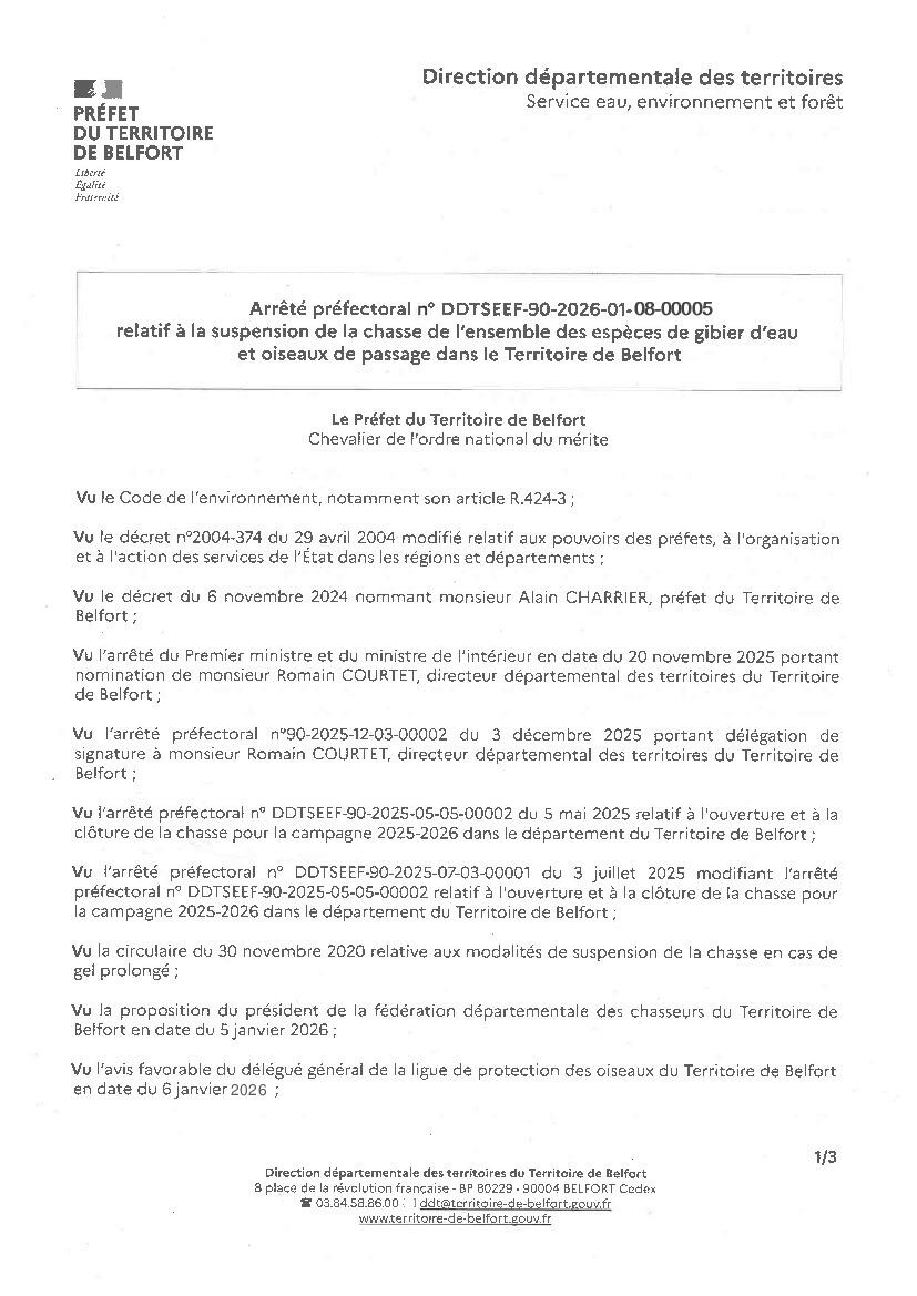 Suspension de la chasse gibiers d'eau et oiseaux de passage