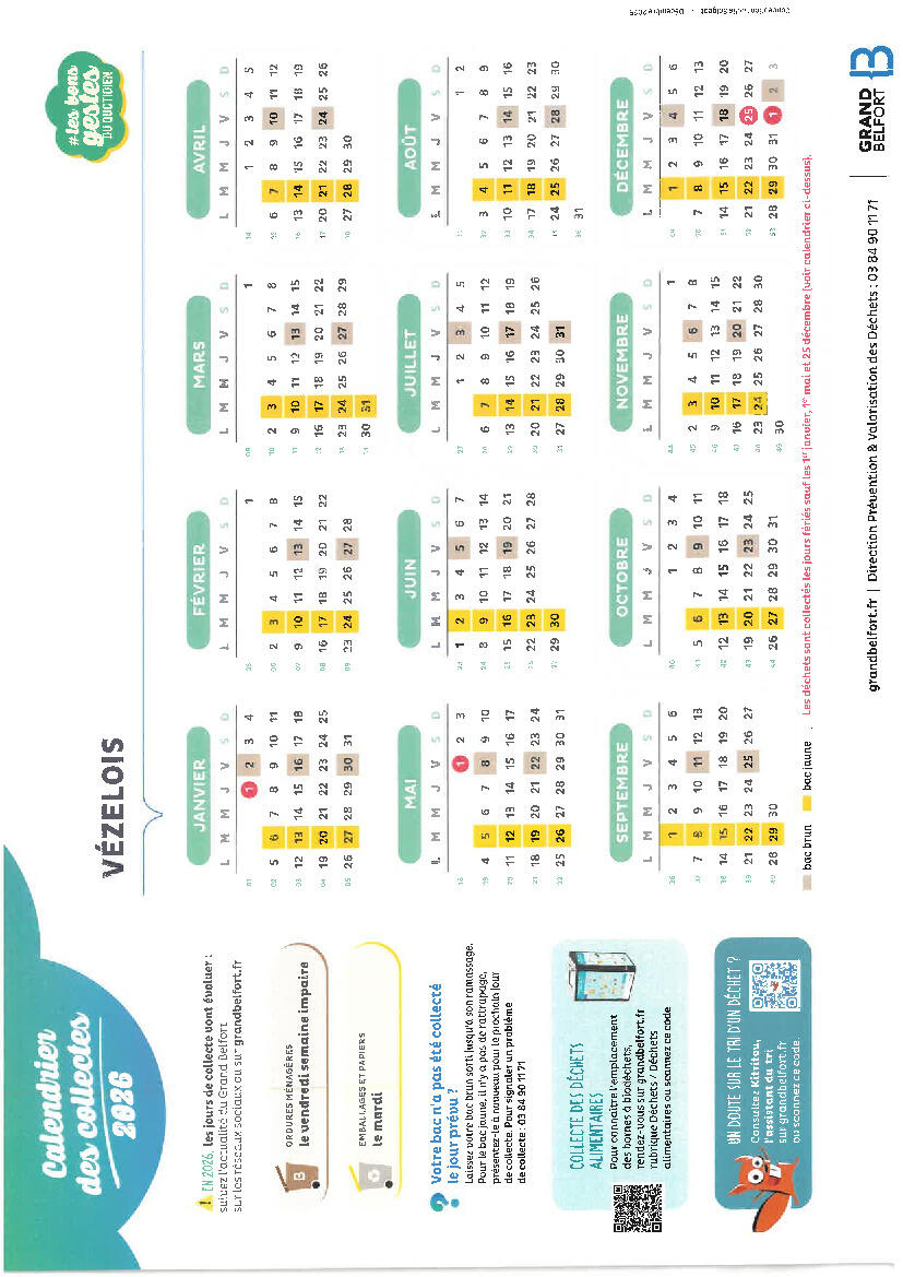 Calendrier de collecte des déchets 2026