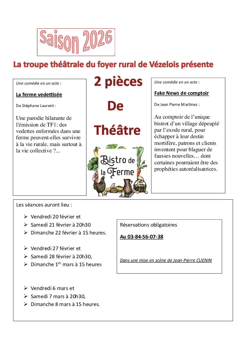 Théâtre De Vézelois - Saison 2026 19/02/2026 La nouvelle pièce du théâtre de Vézelois : Bistro de la ferme ! réservations obligatoires !