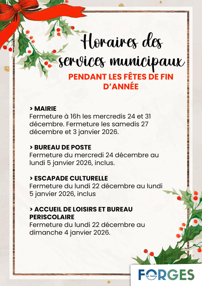 🎄| HORAIRES DES SERVICES MUNICIPAUX