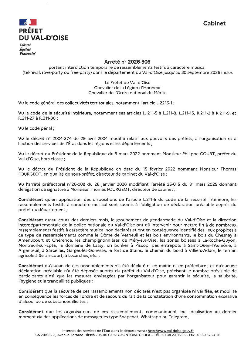 ARRÊTÉ PRÉFECTORAL RASSEMBLEMENTS FESTIFS