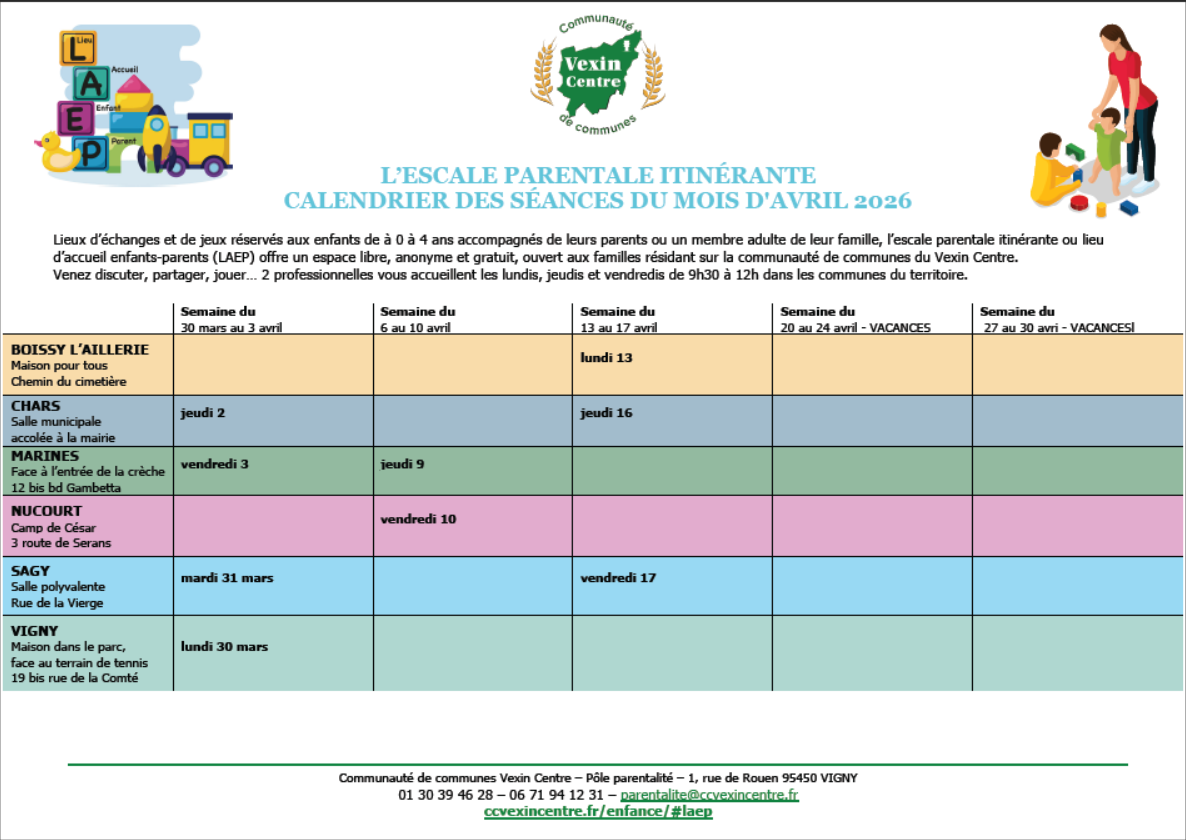 Eveil Musical 0-6 ans le 14 avril et Planning LAEP avril 26