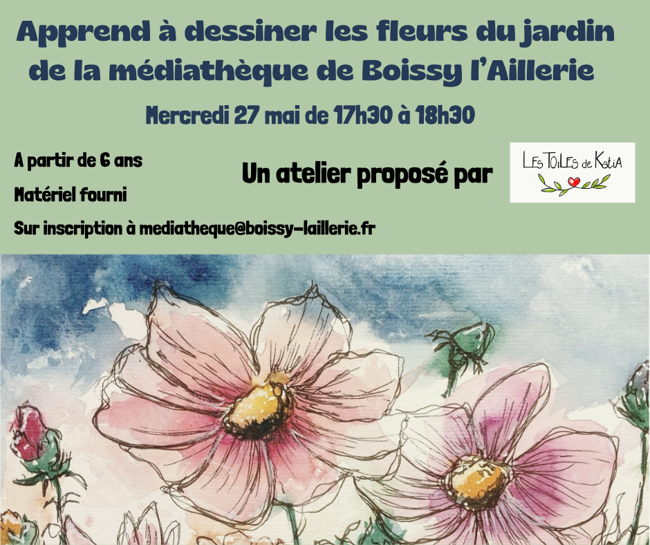 Apprends à dessiner les fleurs du jardin de la médiathèque de Boissy l'Aillerie
