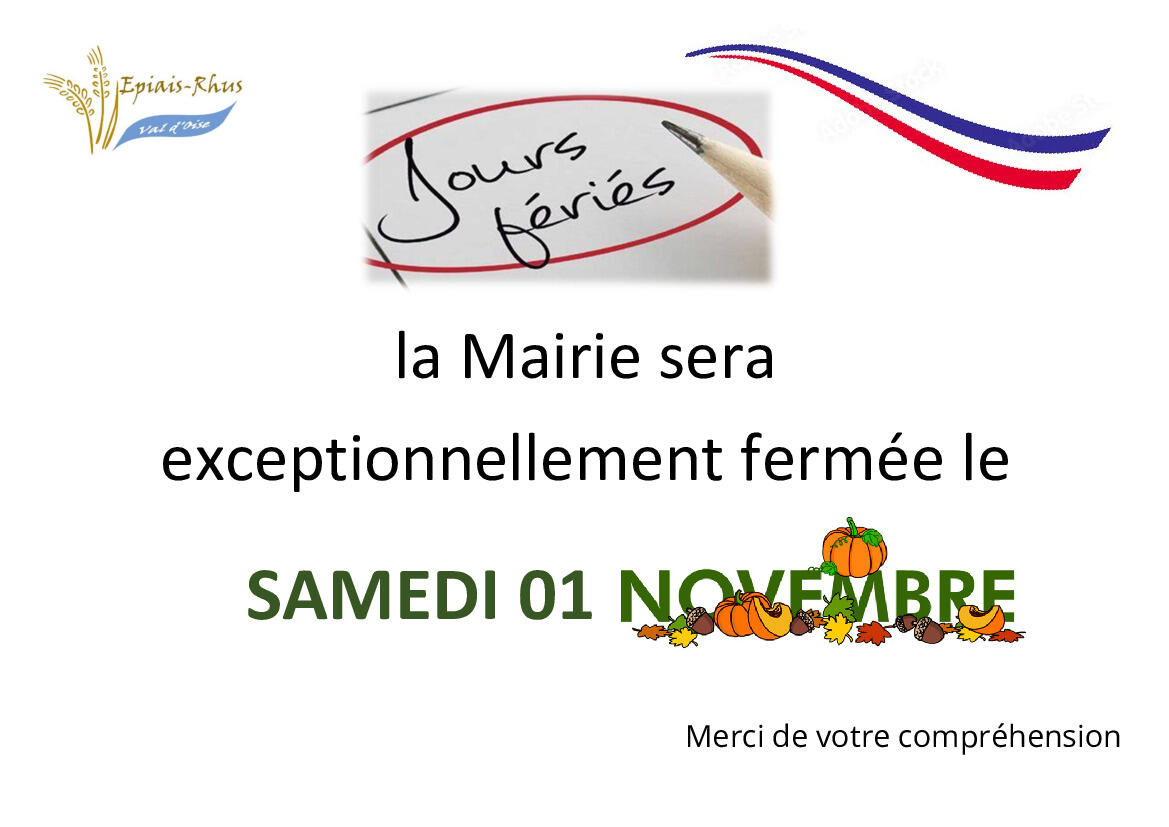 FERMETURE EXCEPTIONNELLE DE LA MAIRIE SAMEDI 1ER NOVEMBRE