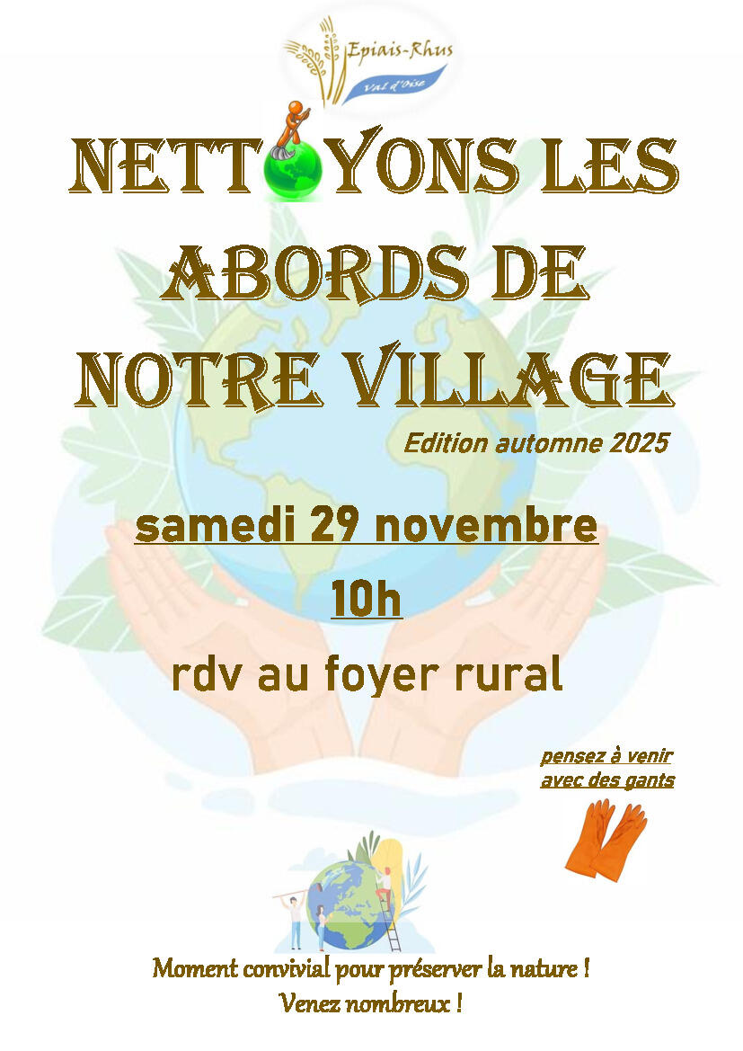 NETTOYONS NOTRE VILLAGE - SAMEDI 29 NOVEMBRE À 10H