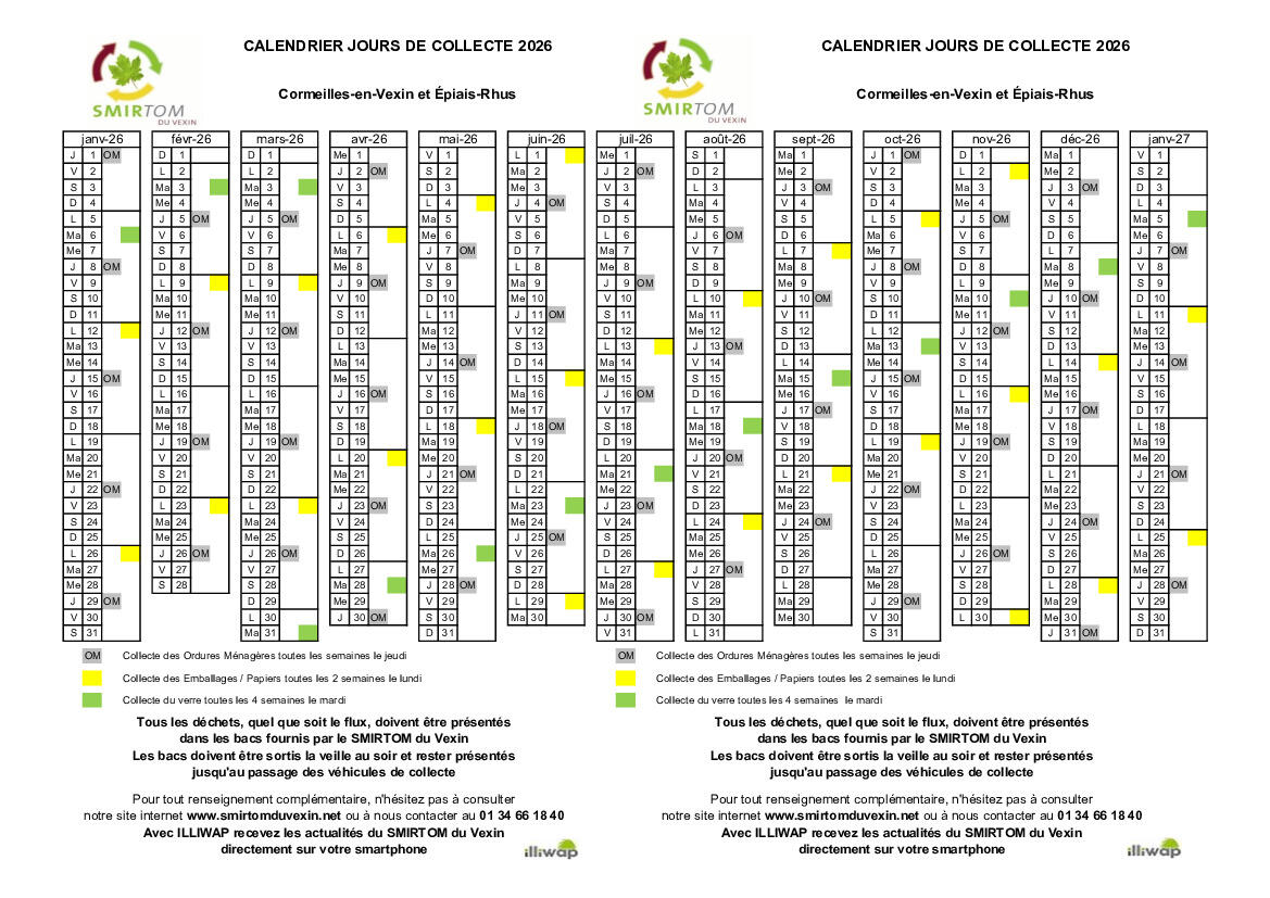 SMIRTOM CALENDRIER DE COLLECTE 2026