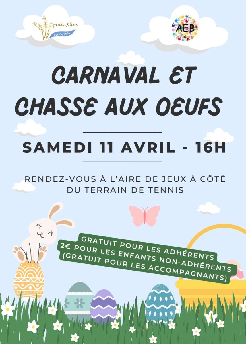 - Samedi 11 avril à 16h : carnaval et chasse aux œufs à l'aire de jeux (à coté du terrain de tennis).