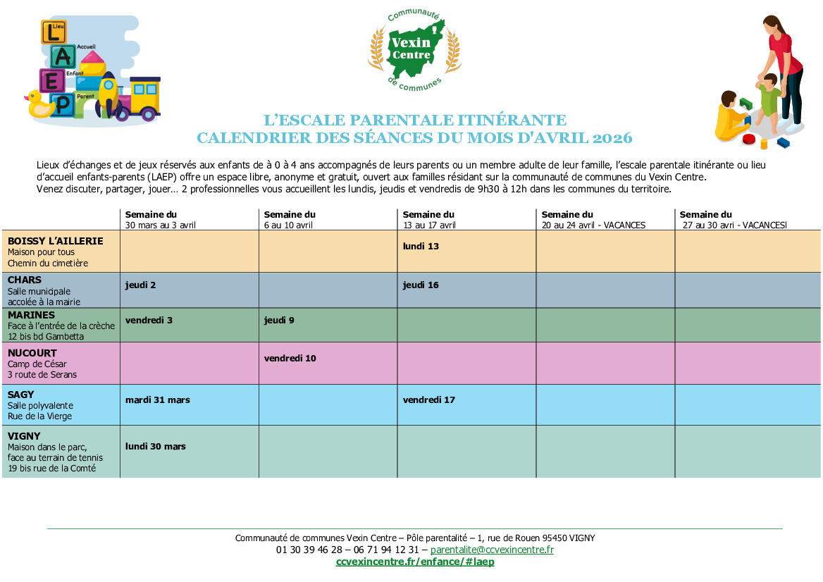 Votre mairie / Actualités / CCVC: planning LAEP d'avril