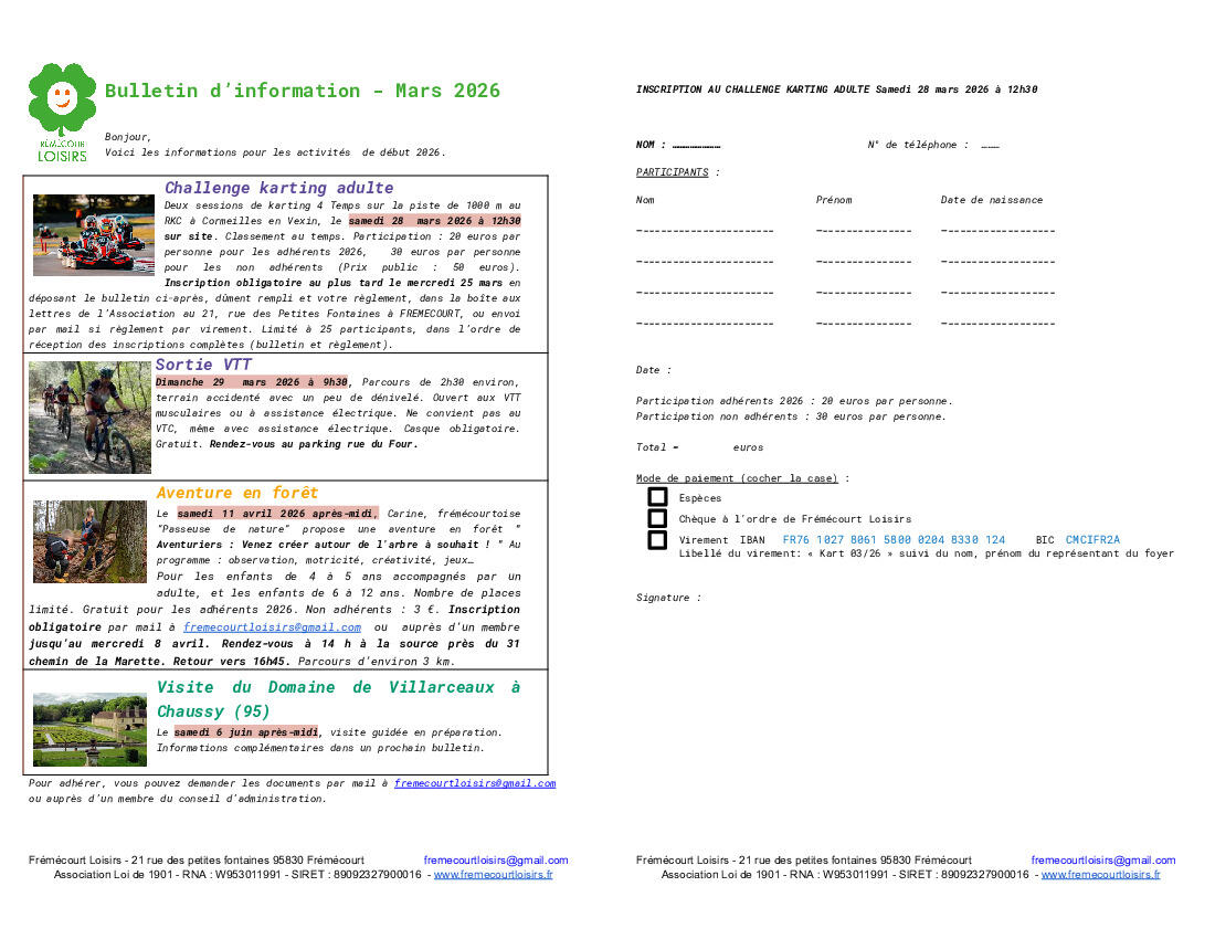 ✨️Vous trouverez ci-joint le bulletin d'information de mars 2026 sur les activités proposées par l'association Frémécourt Loisirs✨️