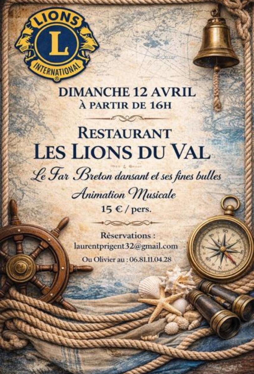 Après-Midi Dansant Par Le Lion’s Club 🥂 ! 29/03/2026 🌟 Le Lion’s Club organise un nouvel après-midi dansant, avec far breton et fine bulles 🍾 ! 👉🏻 Le 12 avril prochain à partir de 16h au restaurant Les Lions Du Val à Herblay. ✅ Réservation: laurentprigent32@gmail.com ou Olivier au 06.81.11.04.28
