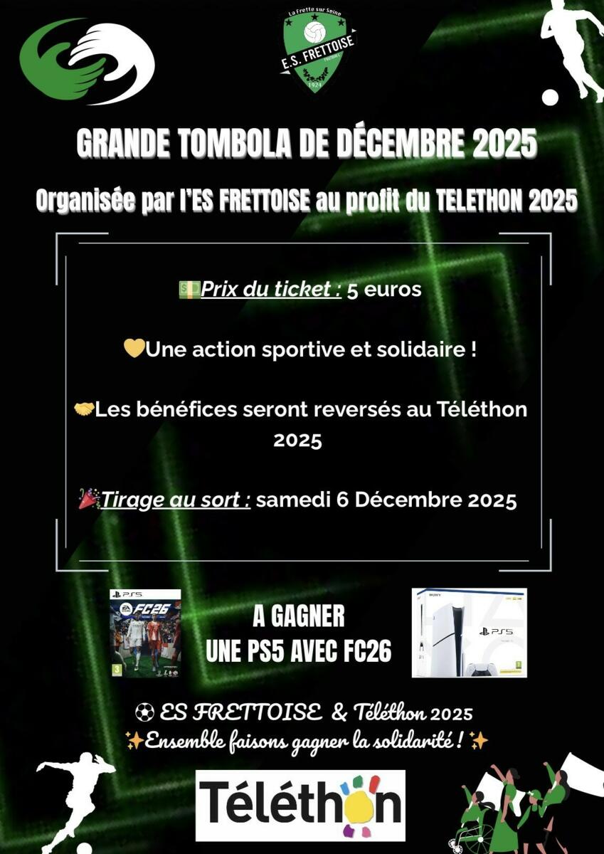 Et l'association participe également au Téléthon 😊, avec une Tombola ! Les billets sont en vente au stade !