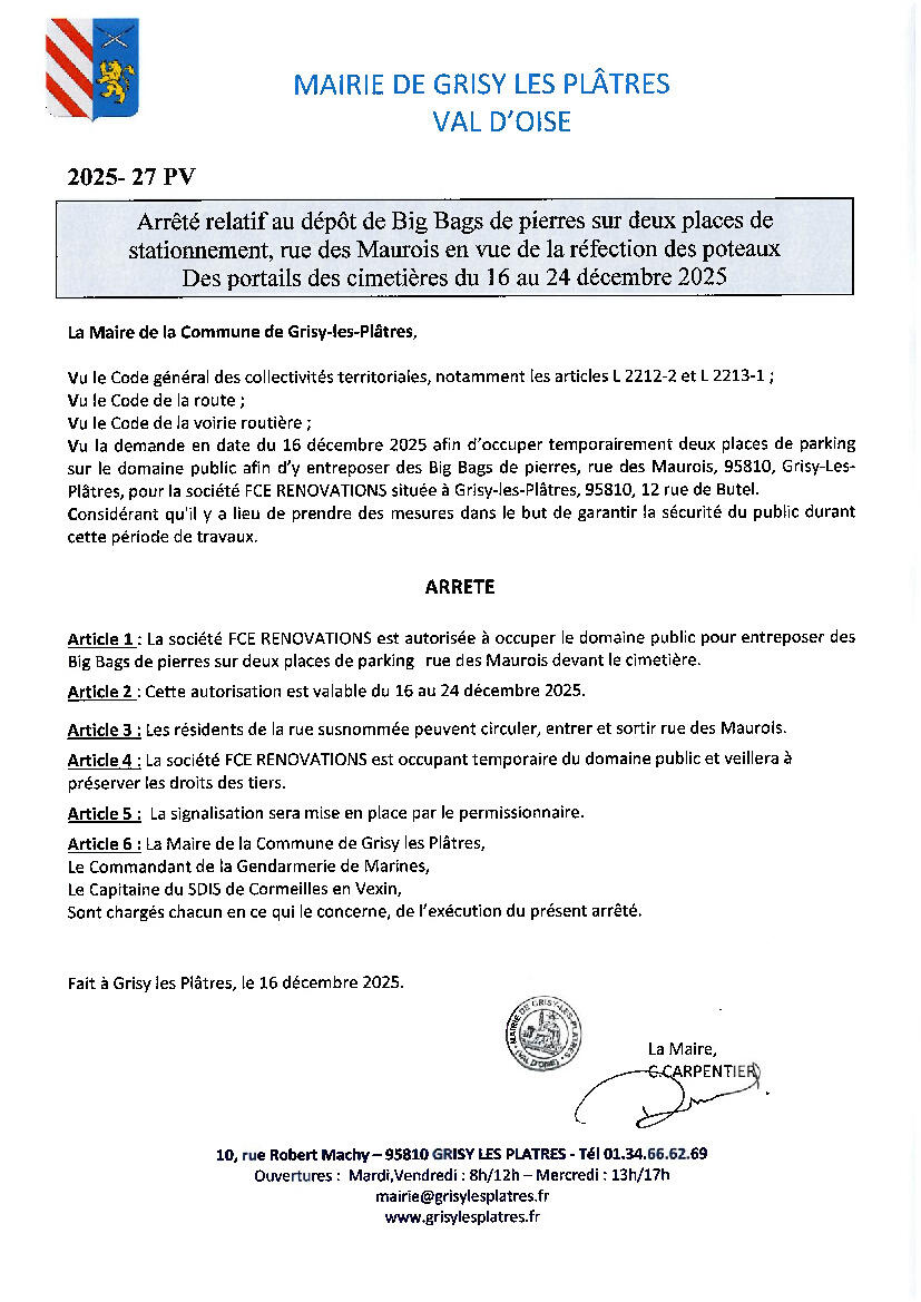 Toute l'actualité de Mairie de Grisy-les-Plâtres