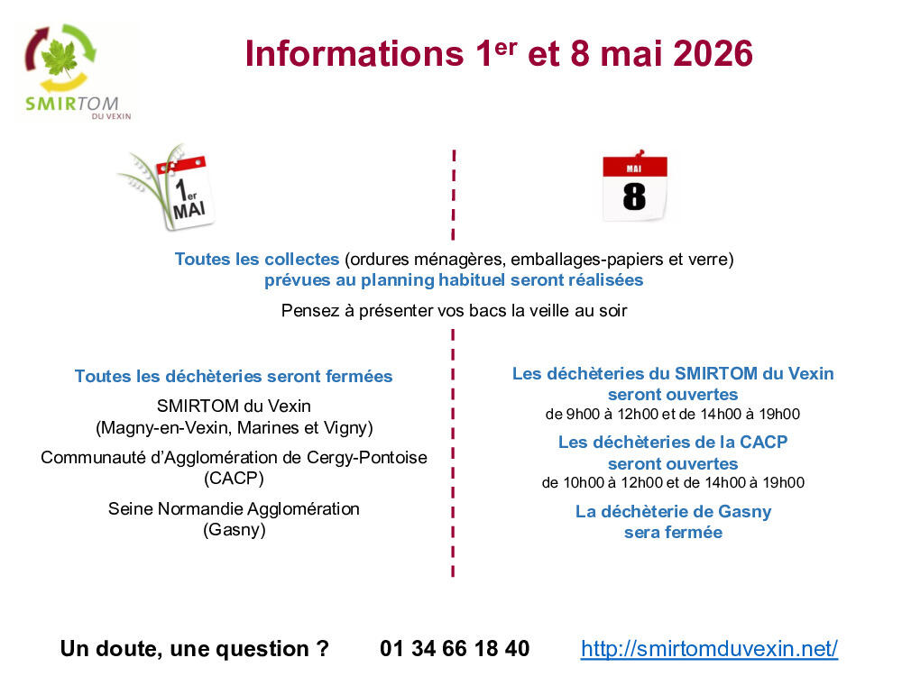 SMIRTOM du Vexin - Informations 1er et 8 mai 2026