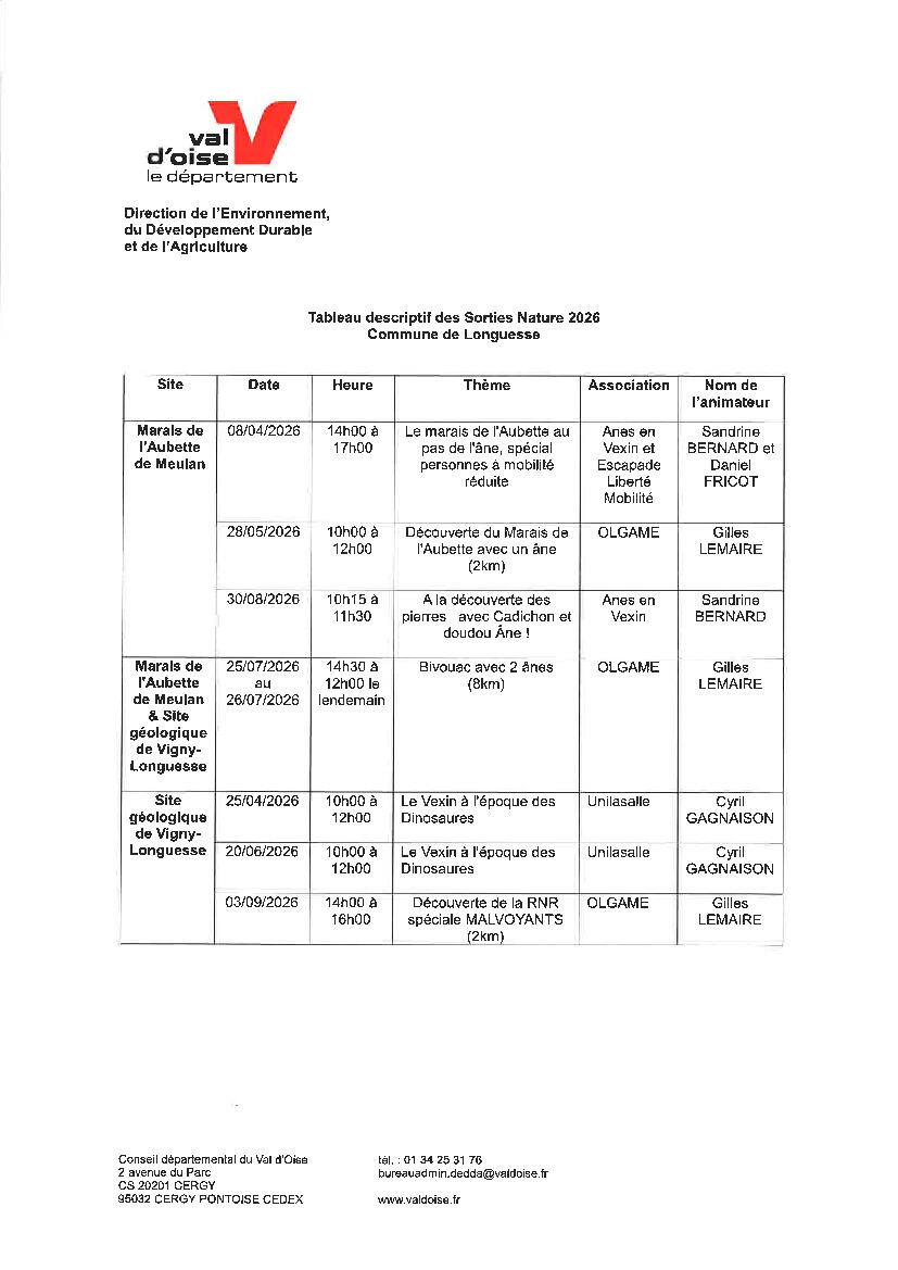Le Département du Val d'Oise organise des sorties nature sur le territoire.