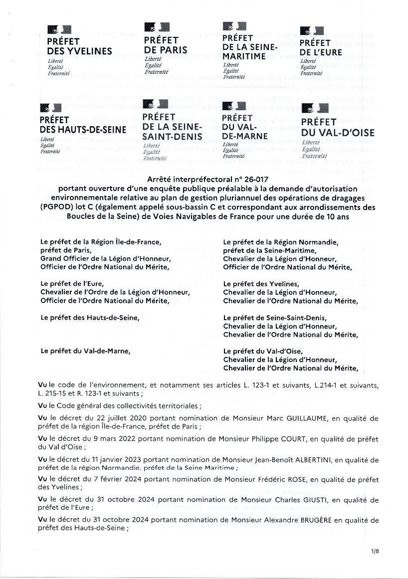 Enquête publique concernant la demande d’autorisation environnementale présentée par la direction territoriale de Voies Navigables de France en vue du renouvellement du lot C du plan de gestion pluriannuel des opérations de dragage (PGPOD) pour la période 2024 à 2034.