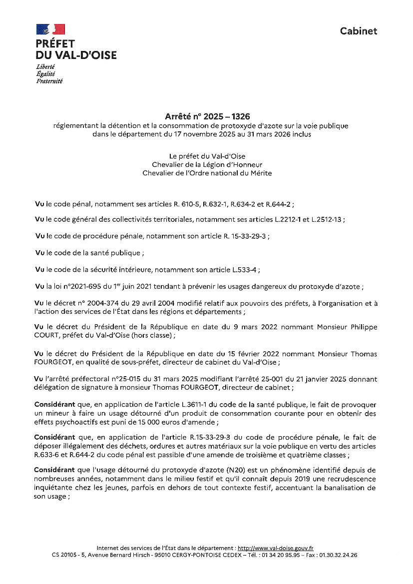 ARRÊTÉ PRÉFECTORAL DÉTENTION DE PROTOXYDE D'AZOTE