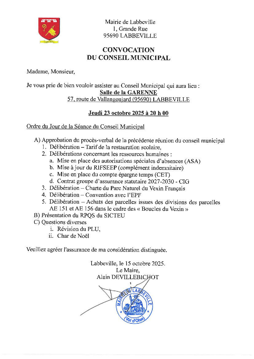 Réunion du Conseil Municipal le 23 octobre 2025