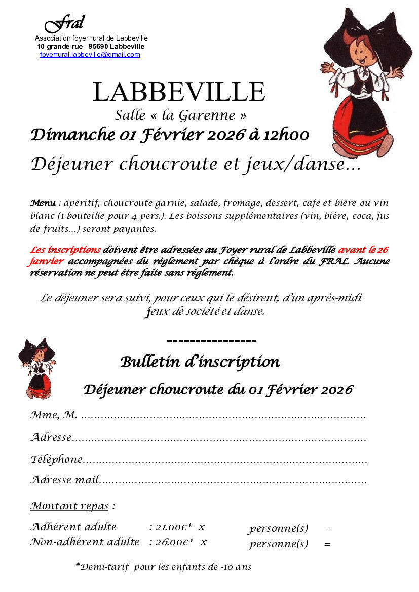Choucroute FRAL le 1 Février - Inscrip. avant le 26 janvier