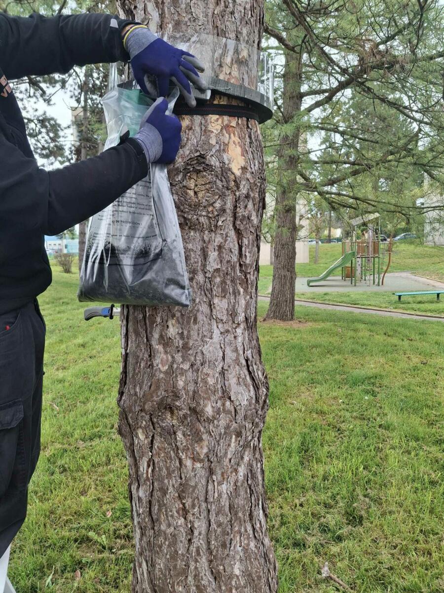 🙏 Merci aux Services Techniques pour l’installation de ces pièges anti-chenilles processionnaires !