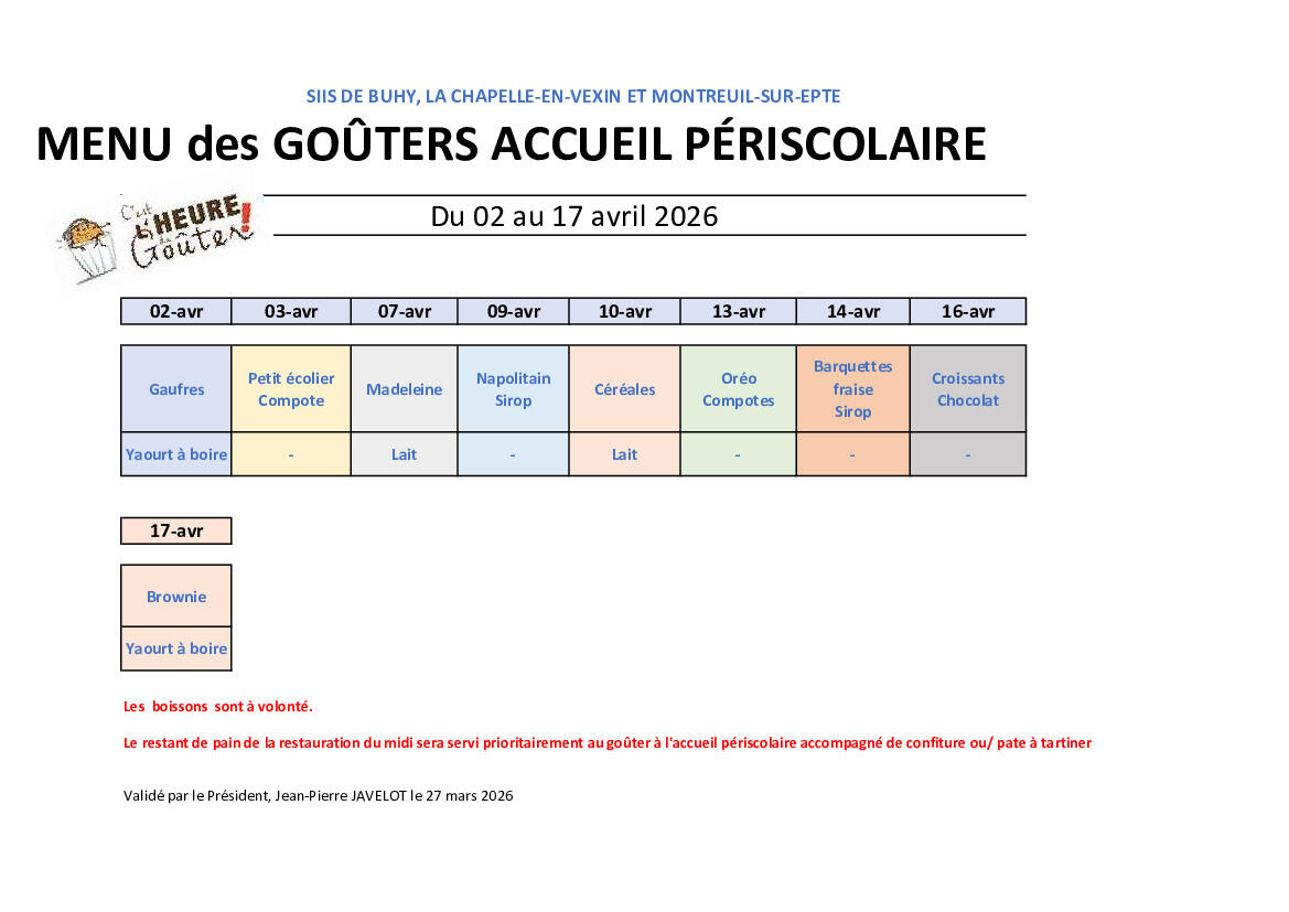 Votre mairie / Actualités / SIIS - MENU DES GOÛTERS À L'ACCUEIL PÉRISCOLAIRE